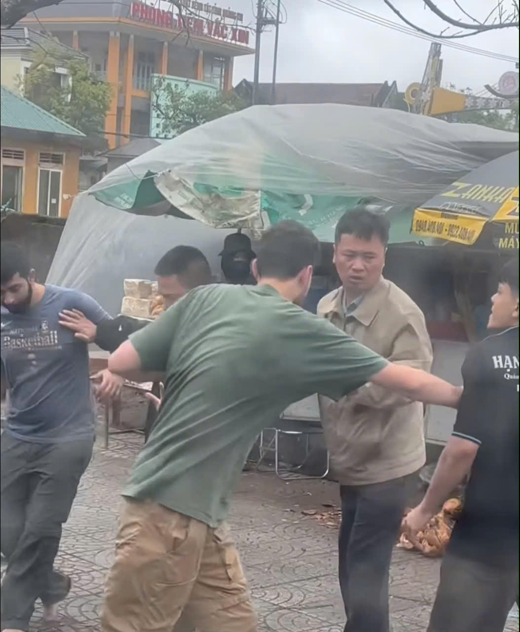Tiếp đó, một du khách người nước ngoài khác tiến đến can ngăn, kéo người phụ xe khách đi ra chỗ khác. Clip được ghi tại khu vực vỉa hè trên quốc lộ 1A đi qua TP Đông Hà, tỉnh Quảng Trị.