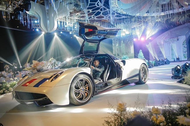 Trong đám cưới con gái đầu lòng Joyce Phạm ngày 8.9 vừa qua, vị đại gia "khét tiếng" Sài Gòn đã có màn trình diễn siêu xe Pagani Huayra trong lễ đường khiến nhiều người choáng ngợp.