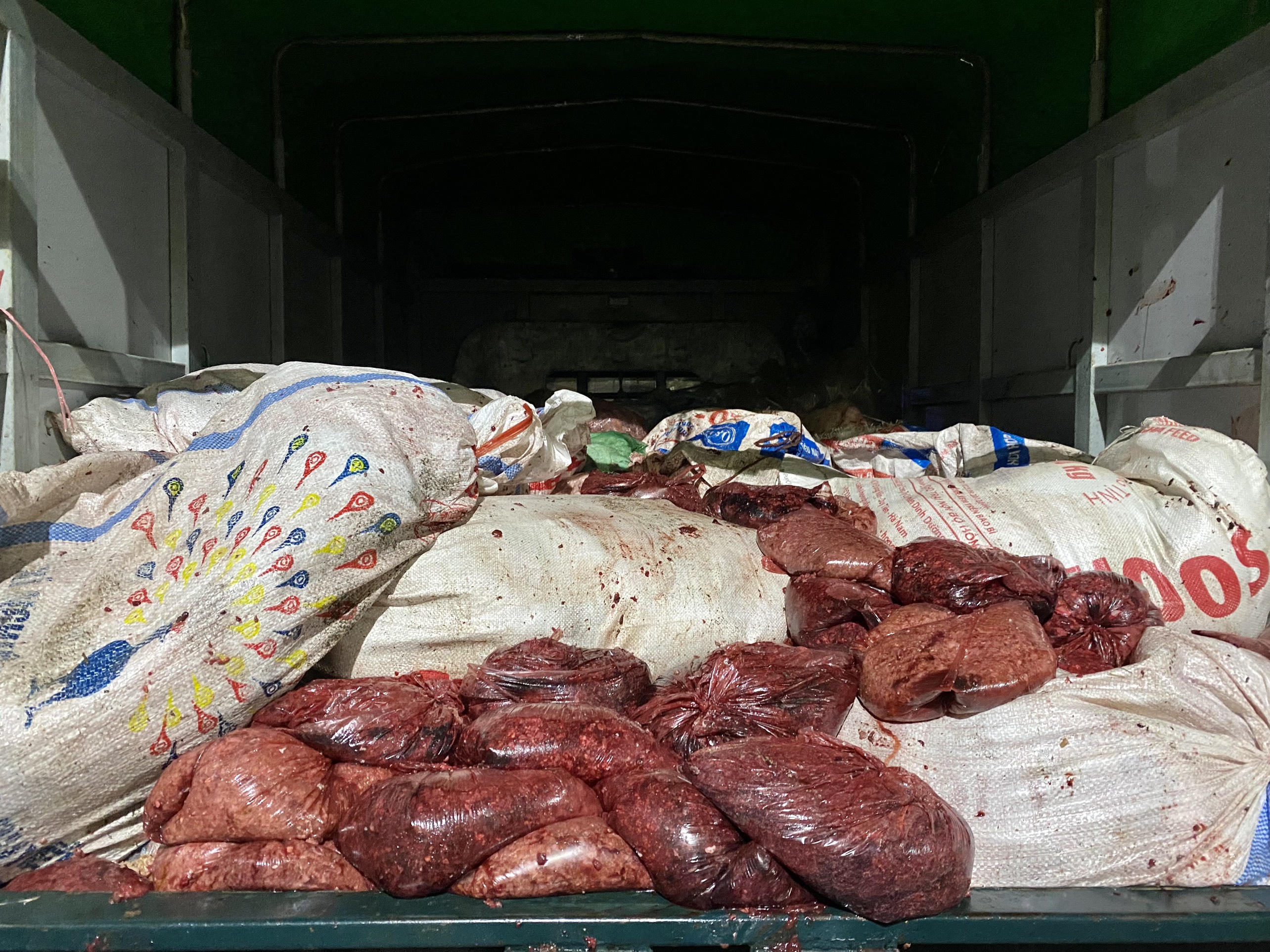 Tại thời điểm kiểm tra, lực lượng chức năng phát hiện, phương tiện của ông T. đang vận chuyển 400kg sản phẩm là thịt lợn đã qua sơ chế, được hút chân không và đóng gói 500gr/túi. Toàn bộ hàng hóa đã biến đổi màu sắc, bốc mùi hôi thối, không đảm bảo chất lượng, an toàn vệ sinh thực phẩm cũng như môi trường.