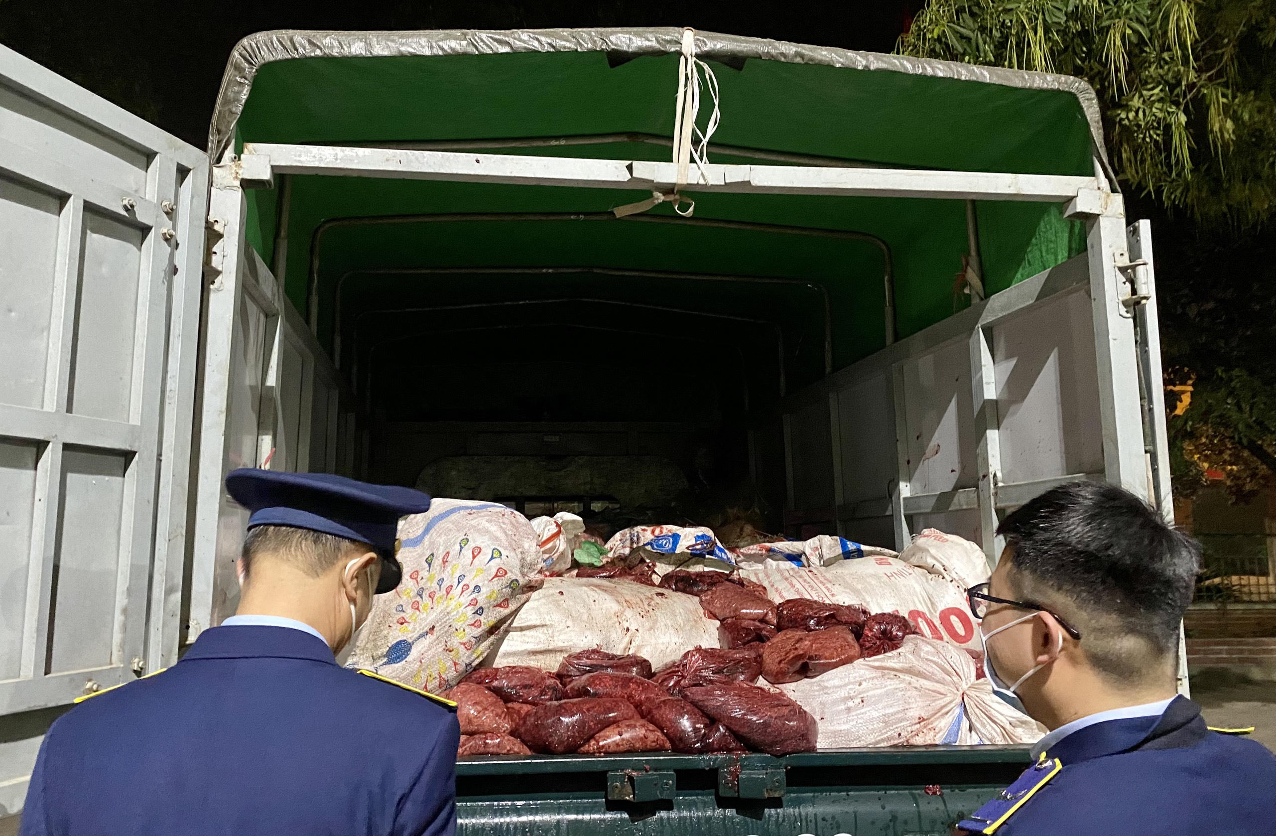 Chủ sở hữu lô hàng đồng thời khai báo tại kho hàng ở nhà riêng có chứa trữ trên 3 tấn các sản phẩm từ lợn gồm đầu lợn, xương lợn, da lợn và lòng lợn các loại. Tổng trọng lượng hàng hóa vi phạm gần 4 tấn.