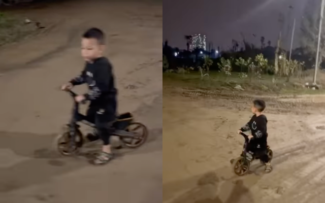 Bên dưới phần bình luận của mình, chủ nhân bài viết chia sẻ thêm đoạn clip ghi lại khoảnh khắc gia đình tìm được bé trai một mình chạy chiếc xe đạp nhỏ đang lang thang ở đoạn đường vắng vẻ toàn bụi cỏ cao giữa đêm tối.