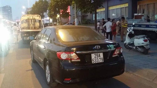 Theo nhân chứng kể lại, khoảng 16h10' cùng ngày, khi đang lưu thông trên đường Trung Kính, anh chứng kiến chiếc xe ô tô Toyota Corolla Altis BKS 29A-533.79 đâm thẳng vào xe máy Honda SH BKS 29D1-509.60 từ phía sau. Cú đâm mạnh khiến người điều khiển xe máy là anh Phạm Việt Anh (sn 1988, Thanh Xuân, Hà Nội) bị hất văng ra khỏi xe và ngã xuống đường.