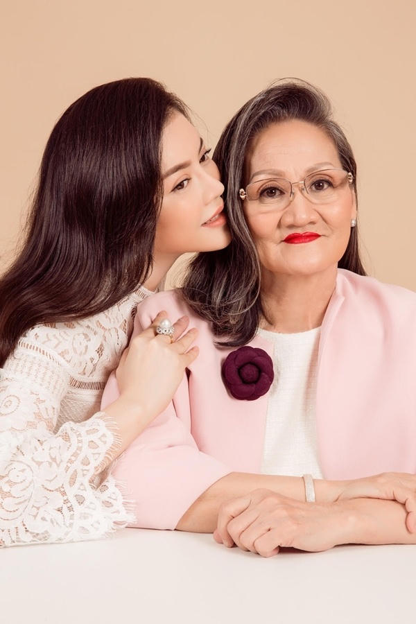 | Lý Nhã Kỳ cho biết vì chị gái (tóc ngắn) định cư ở Đức, phải đến sau hơn 30 năm, gia đình cô mới có dịp chụp bộ ảnh ba thế hệ. |