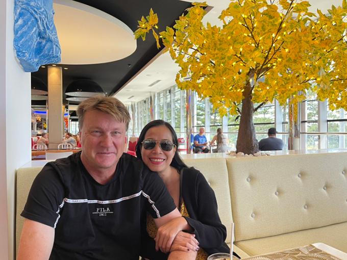 Vợ chồng chị Tuyết, anh Jarrod Hosking trong một buổi đi uống cà phê cuối tuần, tháng 2/2022. Ảnh: Nhân vật cung cấp.