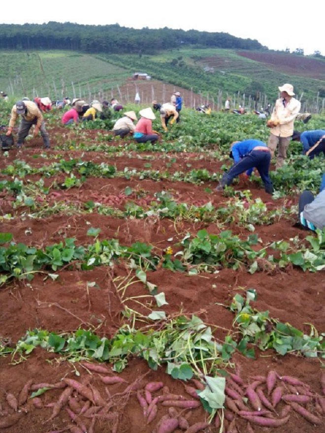 Gặp Quyền trên ruộng khoai lang bạt ngàn đang cho thu hoạch, khuôn mặt lấm tấm mồ hôi, anh nhoẻn miệng cười chia sẻ: “Năm nay do ảnh hưởng của thời tiết nên năng suất thu hoạch có hơi kém so với vụ trước. Tuy nhiên, về cơ bản lợi nhuận thu lại vẫn đạt chỉ tiêu. Sau khi trừ tất cả chi phí vườn khoai lang của chúng tôi thu về hàng trăm triệu đồng”.