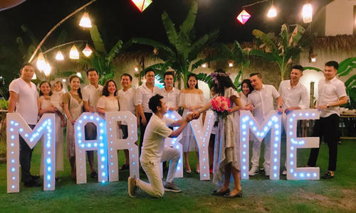 Màn cầu hôn lãng mạn của Nhân được sự giúp sức của nhiều bạn bè, người thân. |