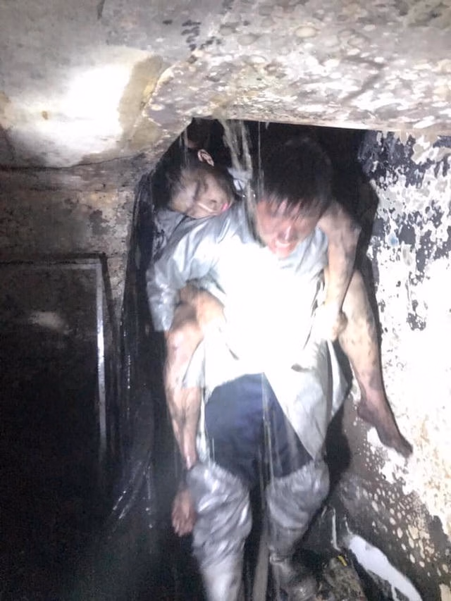 Lúc đó, anh cùng đồng đội của mình nhanh chóng tiếp cận, đưa bé ra khỏi khu vực nguy hiểm. “Tôi đỡ cháu lên vai còn một đồng đội của tôi tên Hiếu nhường bình oxy cho Giang. Từ tầng 4 xuống tầng 1 lối cầu thang rất hẹp nên để cõng Giang xuống được, tôi phải nghiêng người, tháo mũ bảo hộ và bình oxy mới lách qua được”, anh Hoàng kể.