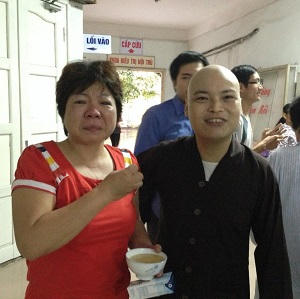 | Huy phát cháo cho bệnh nhân nghèo. |