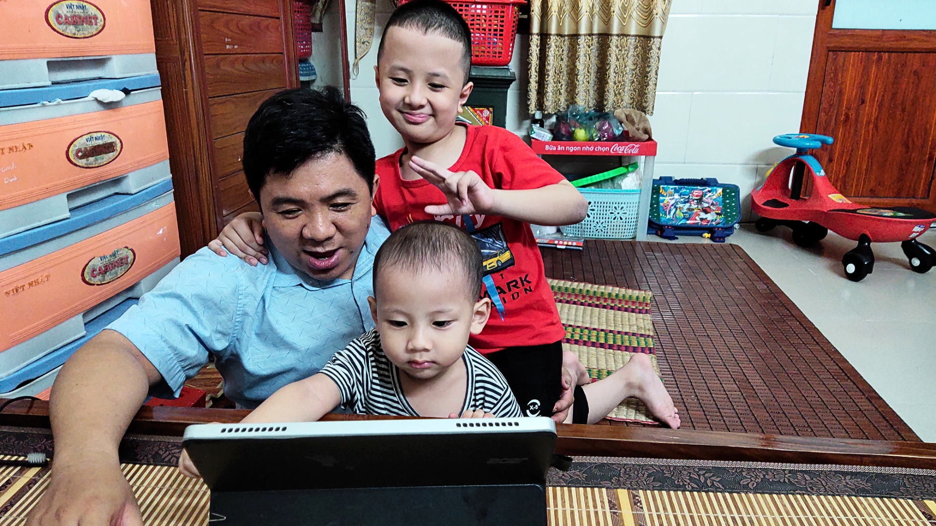 Trong tổ ấm nhỏ của anh Pha luôn rộn rã tiếng cười của hai con trai anh. |