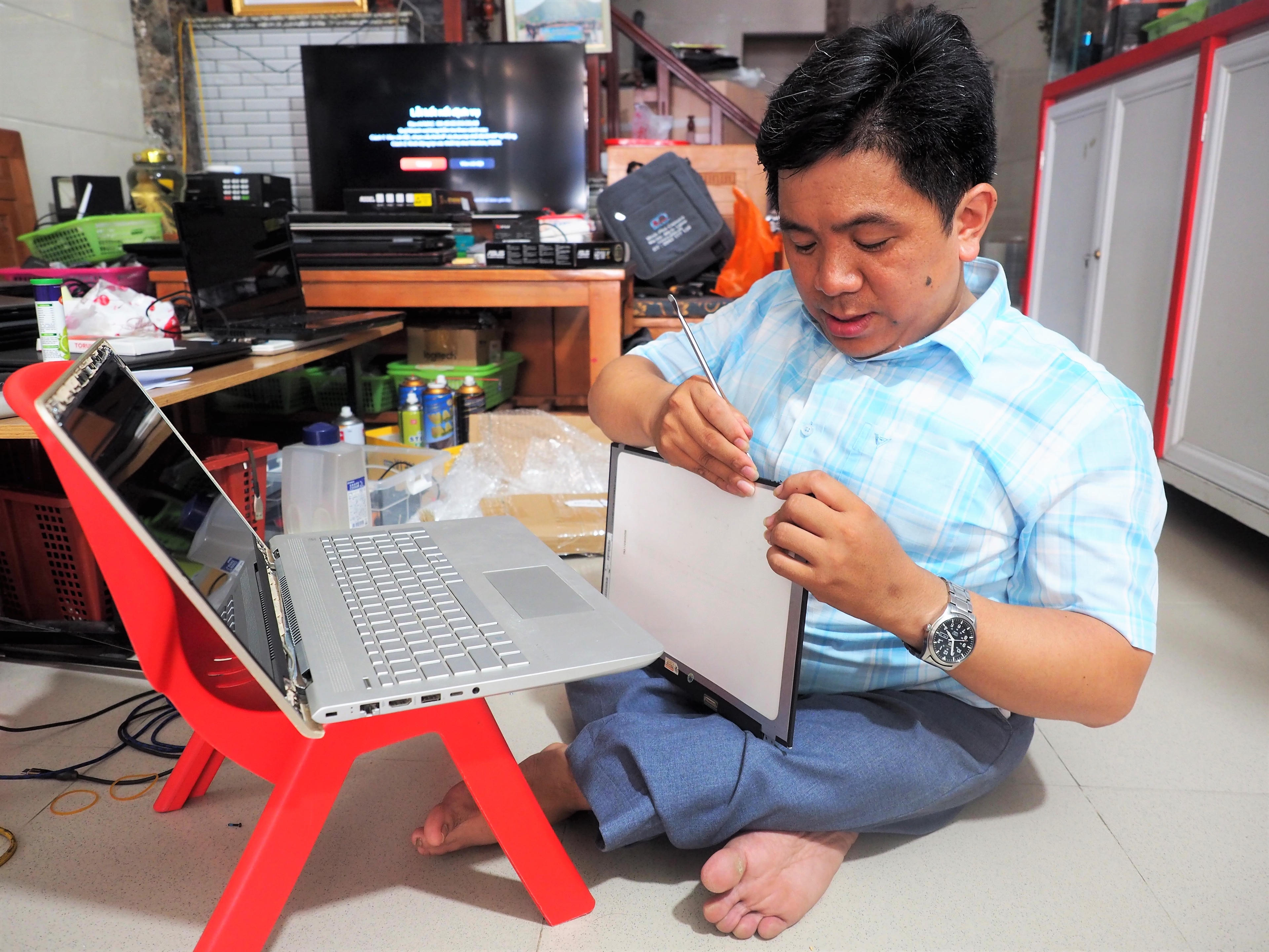 Anh Bùi Minh Pha thay linh kiện máy tính cho khách hàng. |