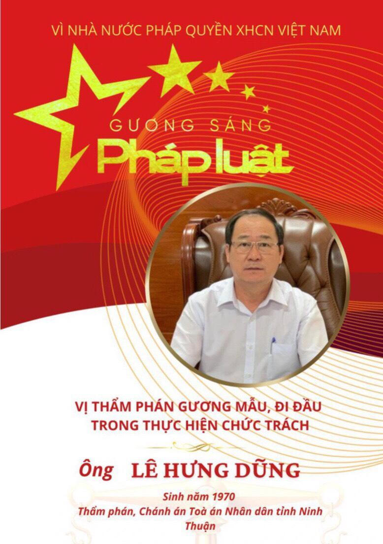 Sau gần 4 tháng bình chọn với gần 200 nhân vật được tôn vinh, đăng tải trên các ấn phẩn của Báo Pháp luật Việt Nam, Ban Tổ chức đã công bố 50 nhân vật tiêu biểu được vinh danh theo đúng nội dung chương trình. Ông Lê Hưng Dũng là một trong những tấm gương được vinh danh với những cống hiến và thành tích trong sự nghiệp xây dựng, phát triển hệ thống tòa án trong giai đoạn mới.