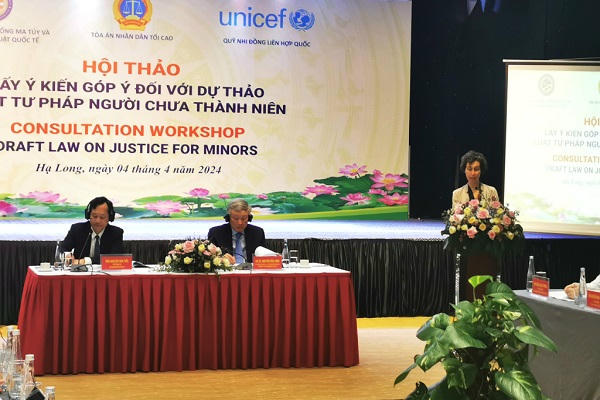 (PLVN) - Ngày 4/4, tại TP Hạ Long (Quảng Ninh), Tòa án Nhân dân tối cao (TANDTC) phối hợp với Cơ quan phòng chống ma túy và Thực thi pháp luật quốc tế và Quỹ Nhi đồng Liên hợp quốc tổ chức Hội thảo lấy ý kiến góp ý đối với dự thảo Luật Tư pháp người chưa thành niên.