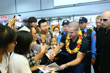 Các tiếp viên của Vietjet cùng hàng trăm người hâm mộ có mặt tại sân bay Nội Bài (Hà Nội) vào ngày 23/10 từ sớm để chào đón chàng “Hoàng tử nhạc pop” Shayne Ward đến Việt Nam, chuẩn bị cho Đêm hội âm nhạc Glow vào ngày 25/10.