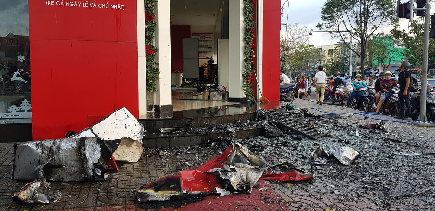 Thông tin ban đầu, khoảng 16h30 chiều cùng ngày, một bảng hiệu nằm trên tầng 3 của cửa hàng xe máy Quốc Tiến 1 (đường Tôn Đức Thắng, phường Hòa An) bất ngờ bốc cháy kèm khói đen bốc ra dữ dội. Vụ cháy khiến các khách hàng đang bảo dưỡng và sửa chữa xe máy tại cửa hàng này tá hỏa tháo chạy ra ngoài.