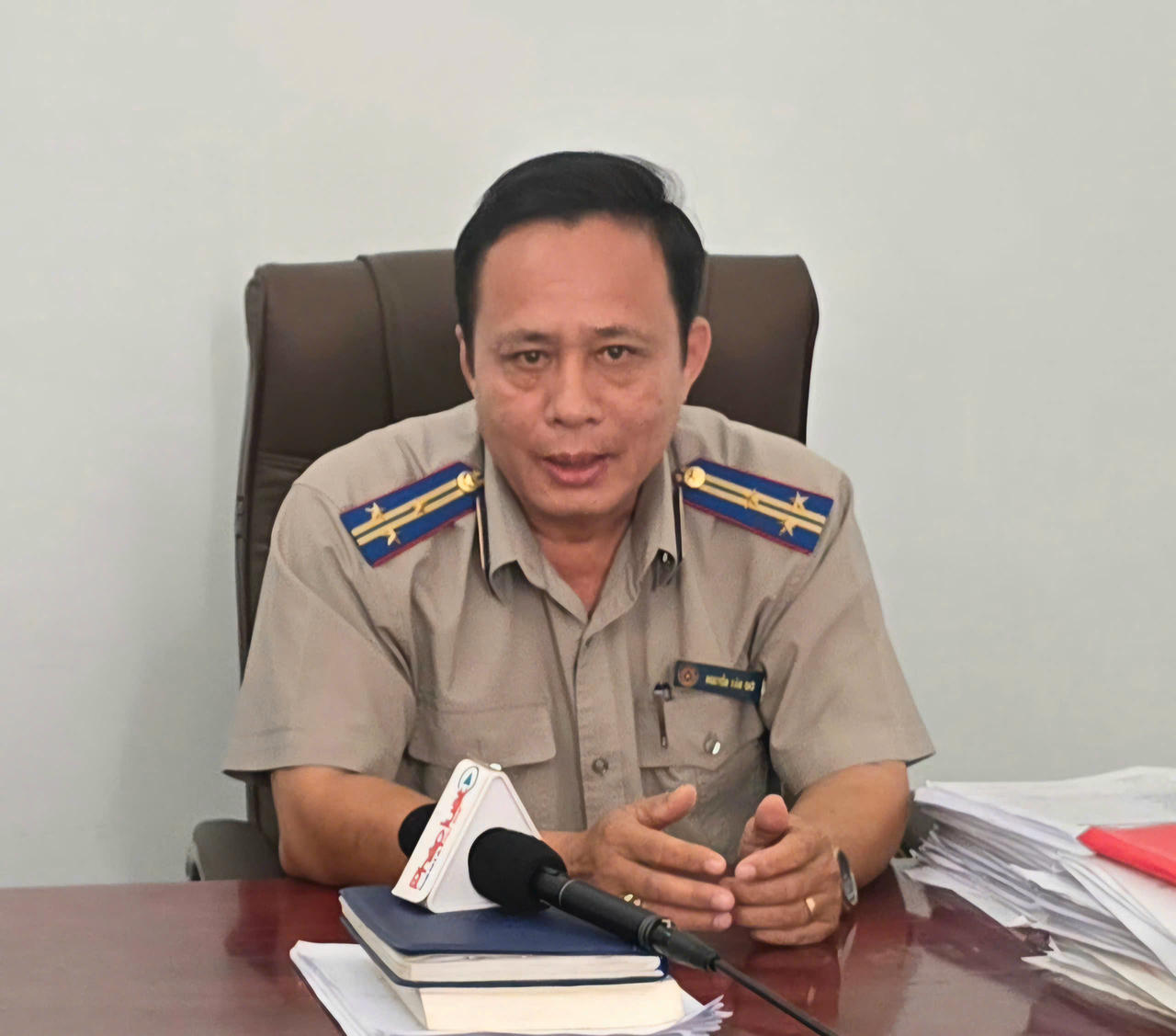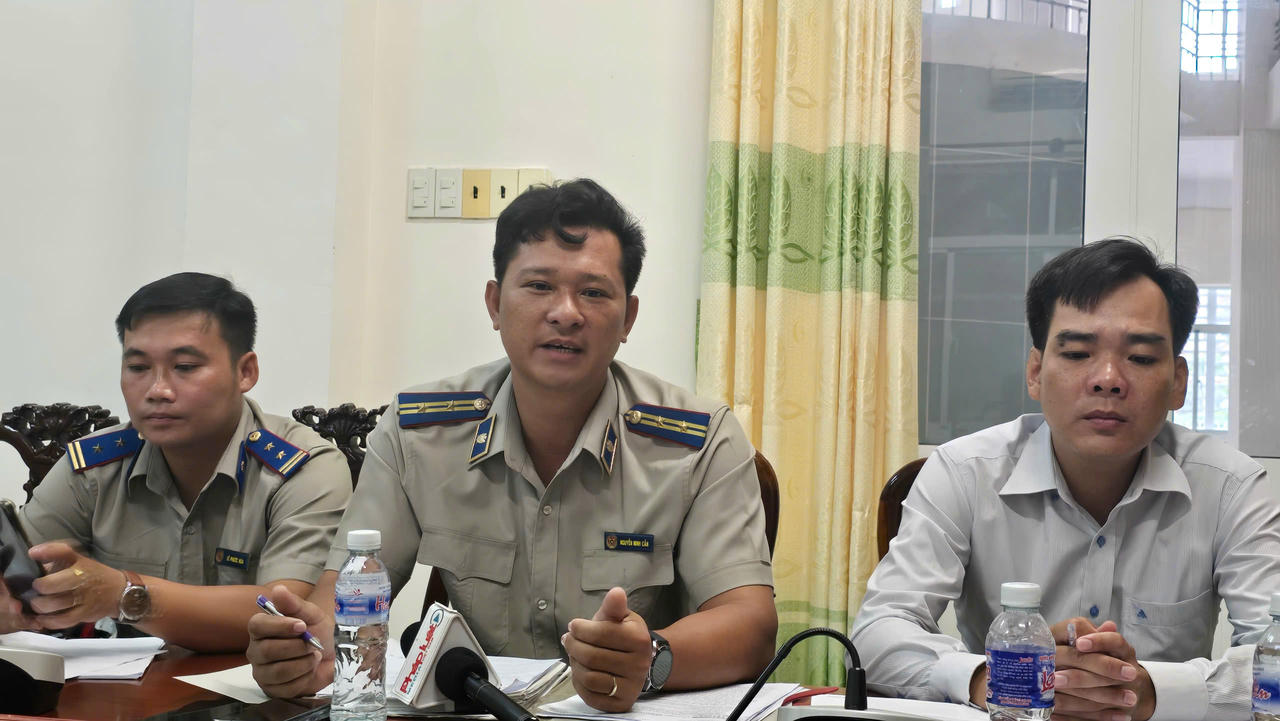 Chấp hành viên Nguyễn Văn Cần, Phó Chi cục trưởng Chi cục THADS huyện Cái Nước, Cà Mau chia sẻ những khó khăn của quá trình cưỡng chế THADS. |