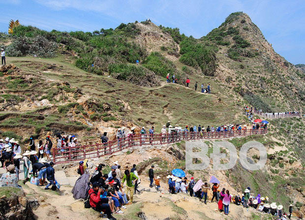 Đáng chú ý nhất là hai địa danh Gành Đá Đĩa và Bãi Môn – Mũi Điện vốn nổi tiếng với vẻ đẹp độc đáo, hùng vĩ bởi những khối đá đen xếp chồng lên nhau giữa biển xanh đã thu hút trên 50.000 lượt du khách, tăng gấp 2,5 lần so với ngày cao điểm Tết 2017 (6.000 lượt khách).