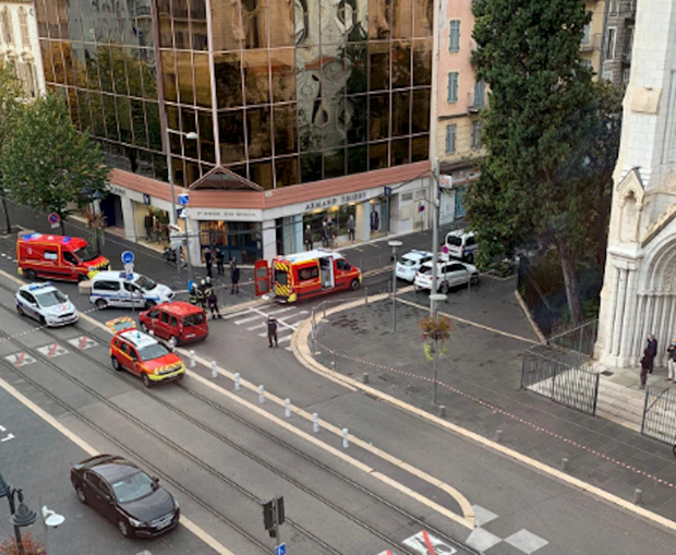 Theo Reuters, Thị trưởng thành phố Nice Christian Estrosi cho biết vụ tấn công bằng dao xảy ra ở trong hoặc gần nhà thờ Notre Dame ở thành phố này vào sáng 29/10. Người đàn ông tình nghi là kẻ tấn công đã hét lớn "Allahu Akbar" (Thánh Allah vĩ đại) ngay sau khi bị bắt. Thị trưởng Estrosi cho rằng đây là vụ tấn công khủng bố. Theo cảnh sát, 3 người đã thiệt mạng và một số người khác bị thương.