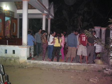 Rời cơ quan công an, chúng tôi men theo đường bê tông ngoằn ngoèo đến gia đình nạn nhân. Sau khi biết vợ đã mất, anh Sự choáng và được người thân đưa vào phòng nằm nghỉ. Dù to cao khỏe mạnh nhưng bị cú sốc quá lớn, người đàn ông này đã suy sụp hẳn.