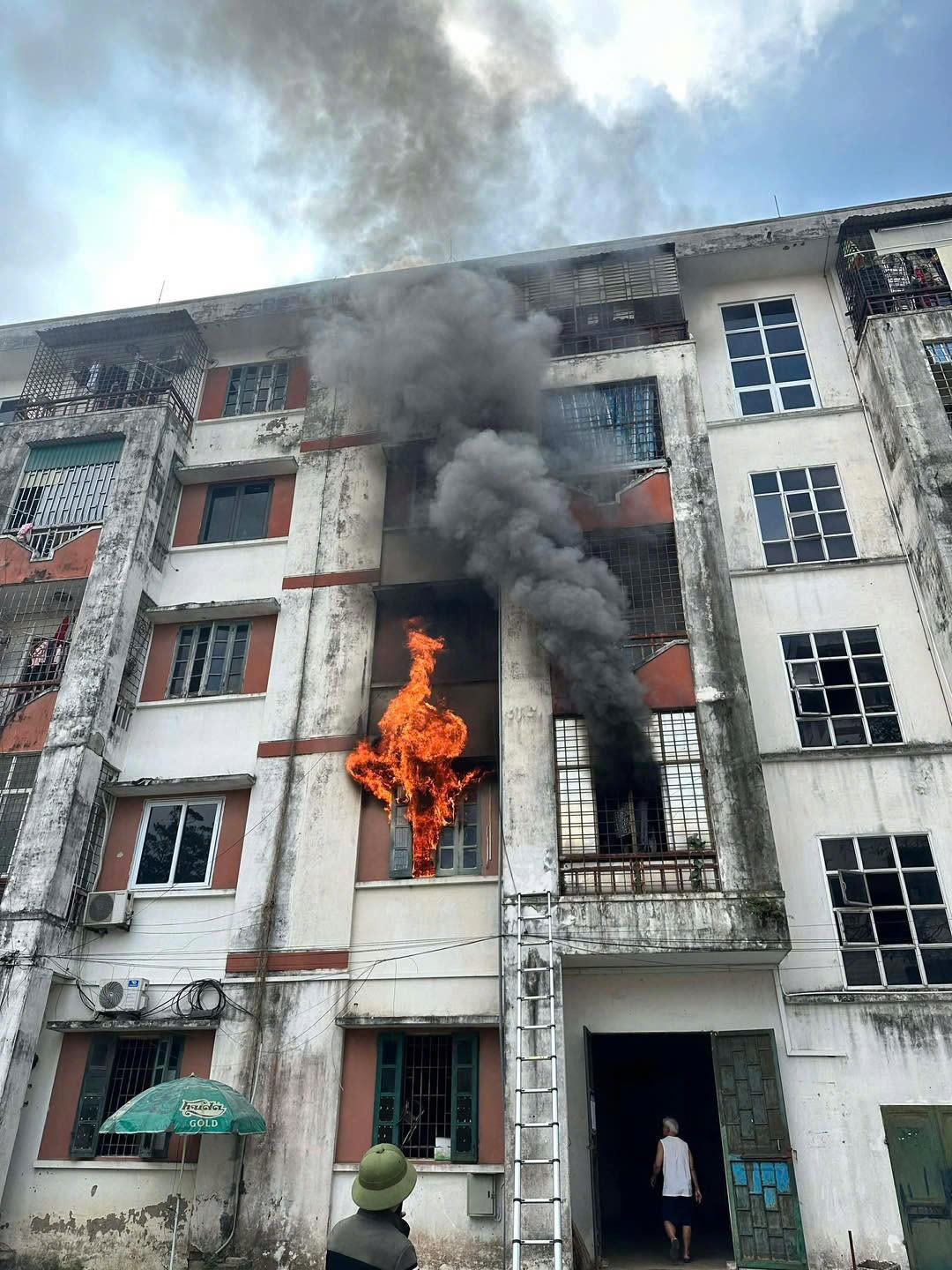 Một đám cháy bất ngờ xảy ra tại căn hộ tầng 2 của toà chung cư 5 tầng bị khóa trái giữa ban ngày, cả khu chung cư náo loạn