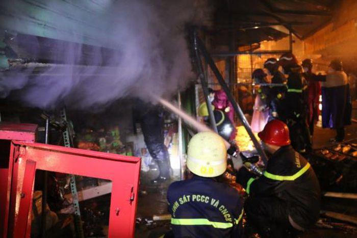 Vụ hỏa hoạn không gây thương vong về người nhưng khiến nhiều tài sản trong ki-ốt bị thiêu rụi.
