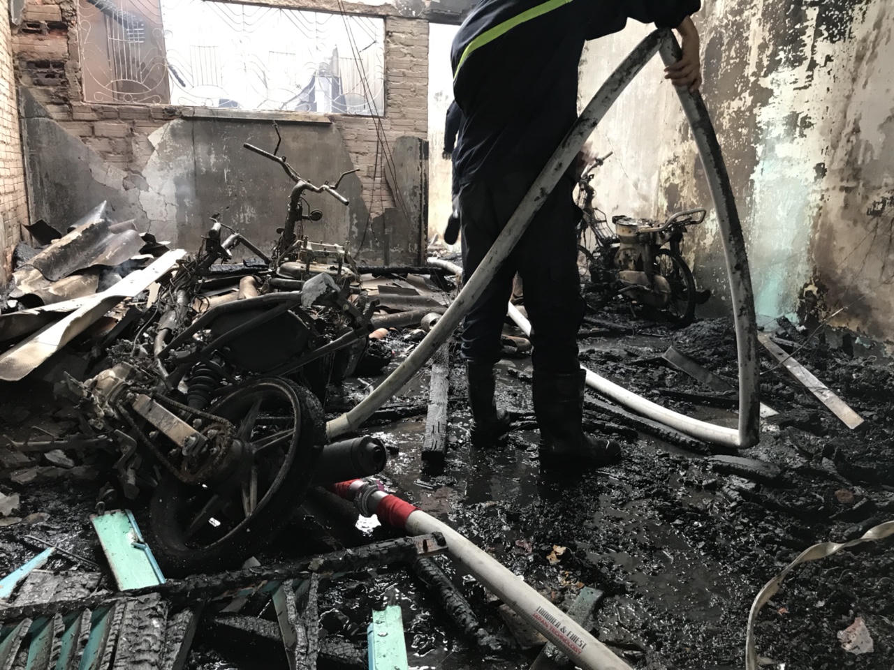 4 chiếc xe máy cùng các vật dụng trong nhà bị thiêu rụi hoàn toàn. Rất may vụ cháy không gây thương vong về người,