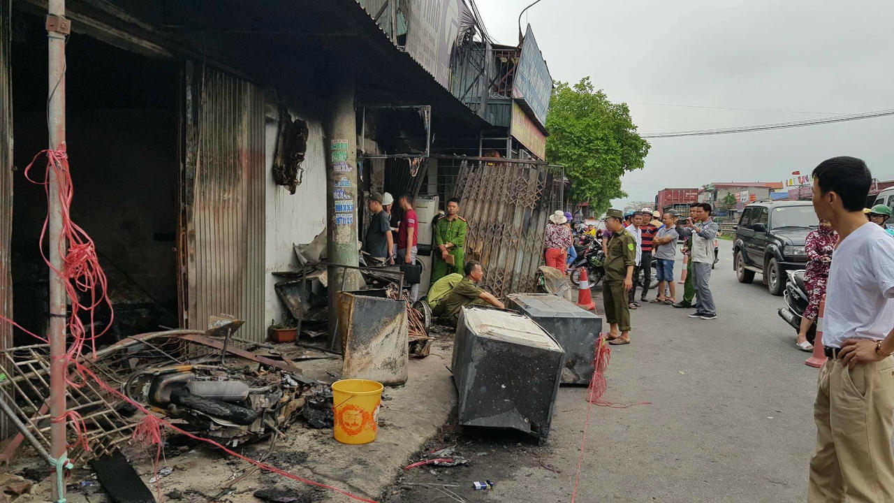 Ngôi nhà bị cháy rộng khoảng 60 m2, xây gạch đất nung, trần mái tôn xốp, chứa hàng điện tử, vải. Đây được cho là nguyên nhân khiến lửa dễ cháy lan.
