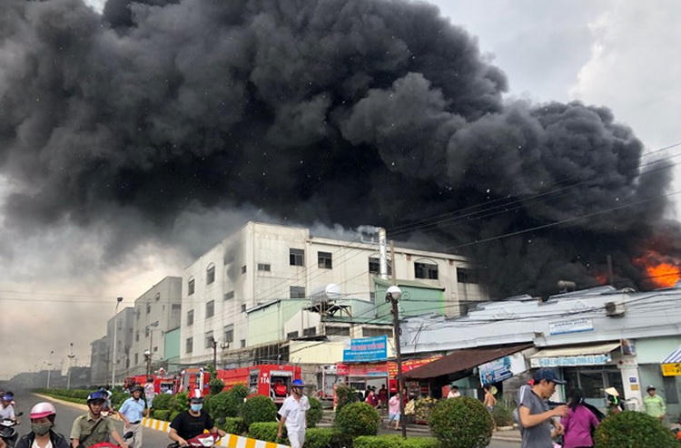 Cảnh sát PCCC tỉnh Bình Dương đã huy động hàng trăm người đến hiện trường để dập lửa, tuy nhiên do đám cháy lớn nên chưa thể tiếp cận vào bên trong.