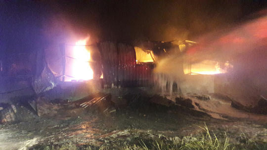 Tại hiện trường, lửa đã thiêu rụi toàn bộ tài sản bên trong kho sơn. Nguyên nhân vụ cháy đang được điều tra.