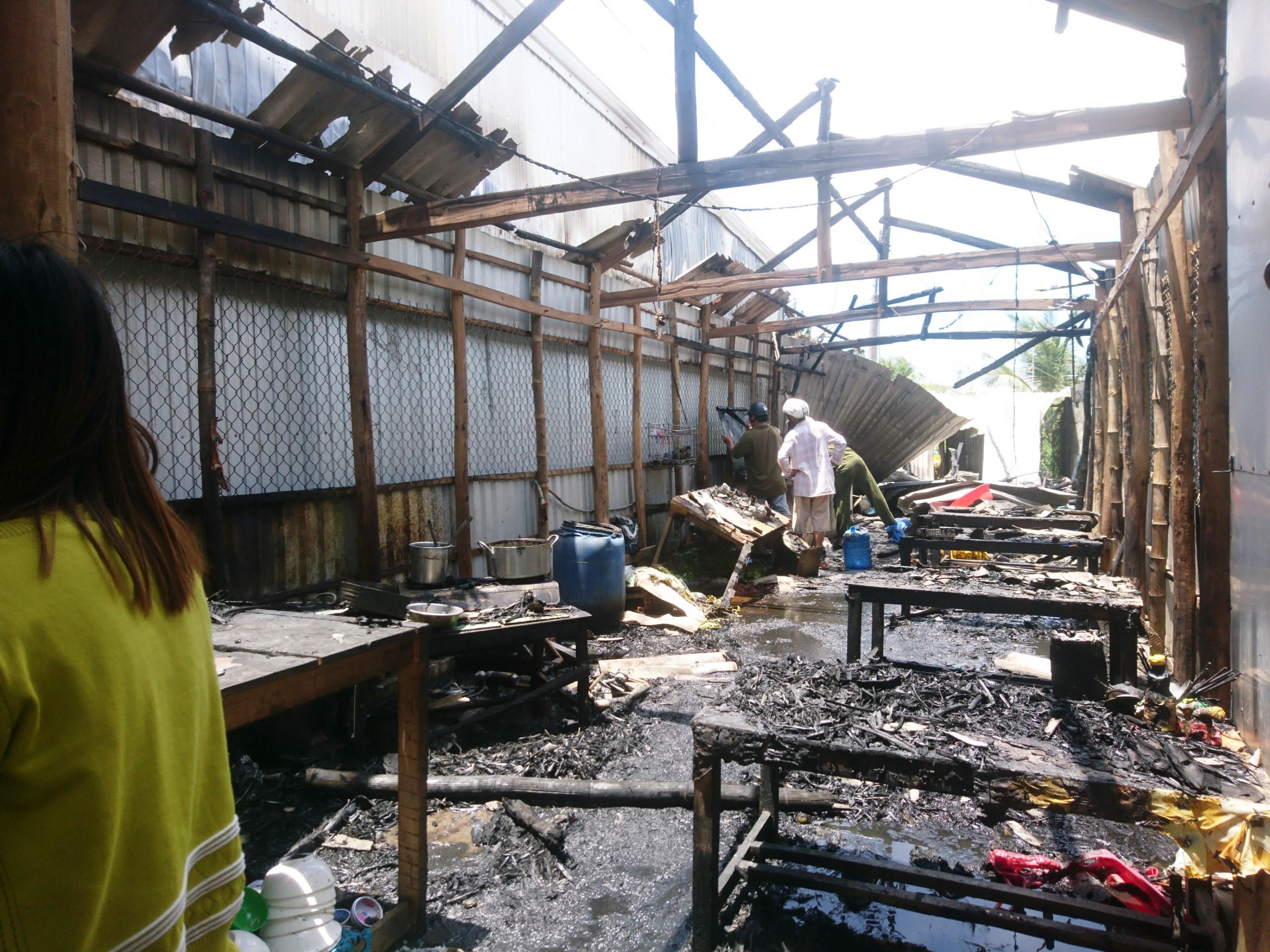 Mọi người chưa kịp phản ứng thì hơi gas bắt lửa cháy lớn chỗ dàn bếp được đặt ngay cửa ra vào nên không ai dám bước vào trong dập lửa.