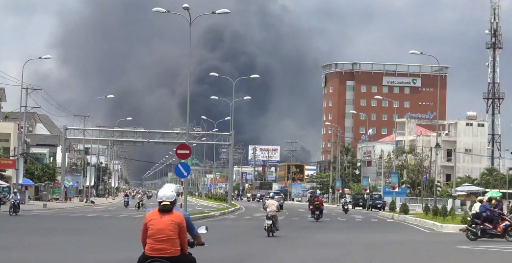 Khói đen từ đám cháy bốc cuồn cuộn, cao hàng chục mét và bao tỏa khoảng không rộng lớn. Từ xa đã có thể ngửi thấy mùi cháy và trông thấy khói đen bốc lên cao. Khói đen xông vào cả nhà dân gần hiện trường khiến mọi người không chịu nổi phải bỏ ra ngoài đường.