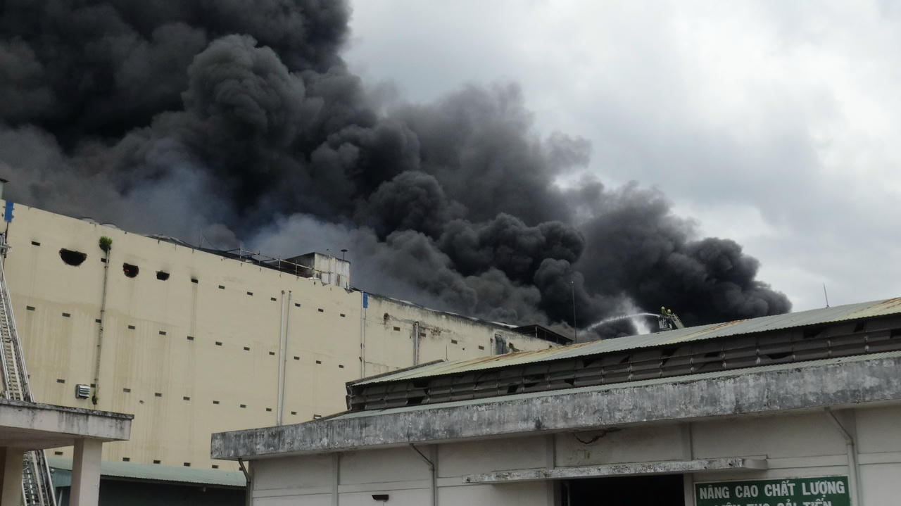 Đến 13h cùng ngày, lực lượng Cảnh sát Phòng cháy chữa cháy (PCCC) TP Cần Thơ vẫn đang tích cực chữa cháy bên trong Công ty may mặc Kwong Lung – Meko (trụ sở tại Khu Công nghiệp Trà Nóc, quận Bình Thủy, TP Cần Thơ).