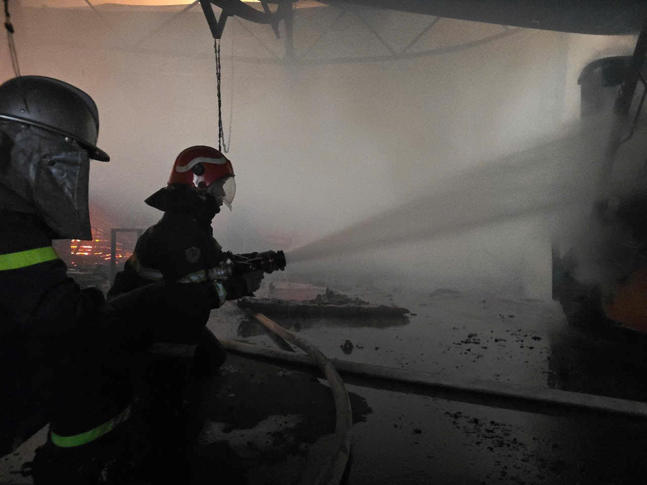 Tại hiện trường, lực lượng chức năng xác định địa điểm cháy là dãy nhà xưởng kết cấu khung thép, mái tôn cao 6m với nhiều chất, vật liệu dễ cháy. Đám cháy diễn biến phức tạp, có nhiều khói, khí độc và đã lan sang các xưởng lân cận, có nguy cơ cháy lan sang các nhà dân xung quanh.