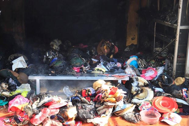 Theo quan sát của phóng viên, sau đám cháy, các kiot hàng hoá hết sức tan hoang. Nhiều khu vực, lửa đã khiến vải vóc, quần áo bị cháy rụi.