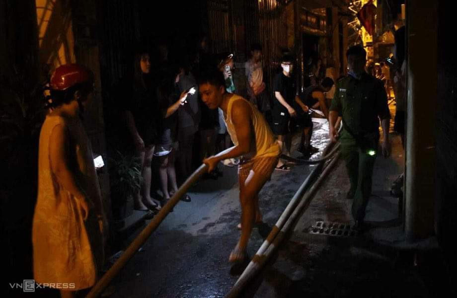 Do hiện trường nằm trong ngõ sâu nên công tác cứu hỏa gặp nhiều khó khăn. Xe chữa cháy chỉ có thể đỗ cách hiện trường 3-400m, lực lượng chức năng phải dẫn vòi rồng vào ngõ sâu để dập lửa.