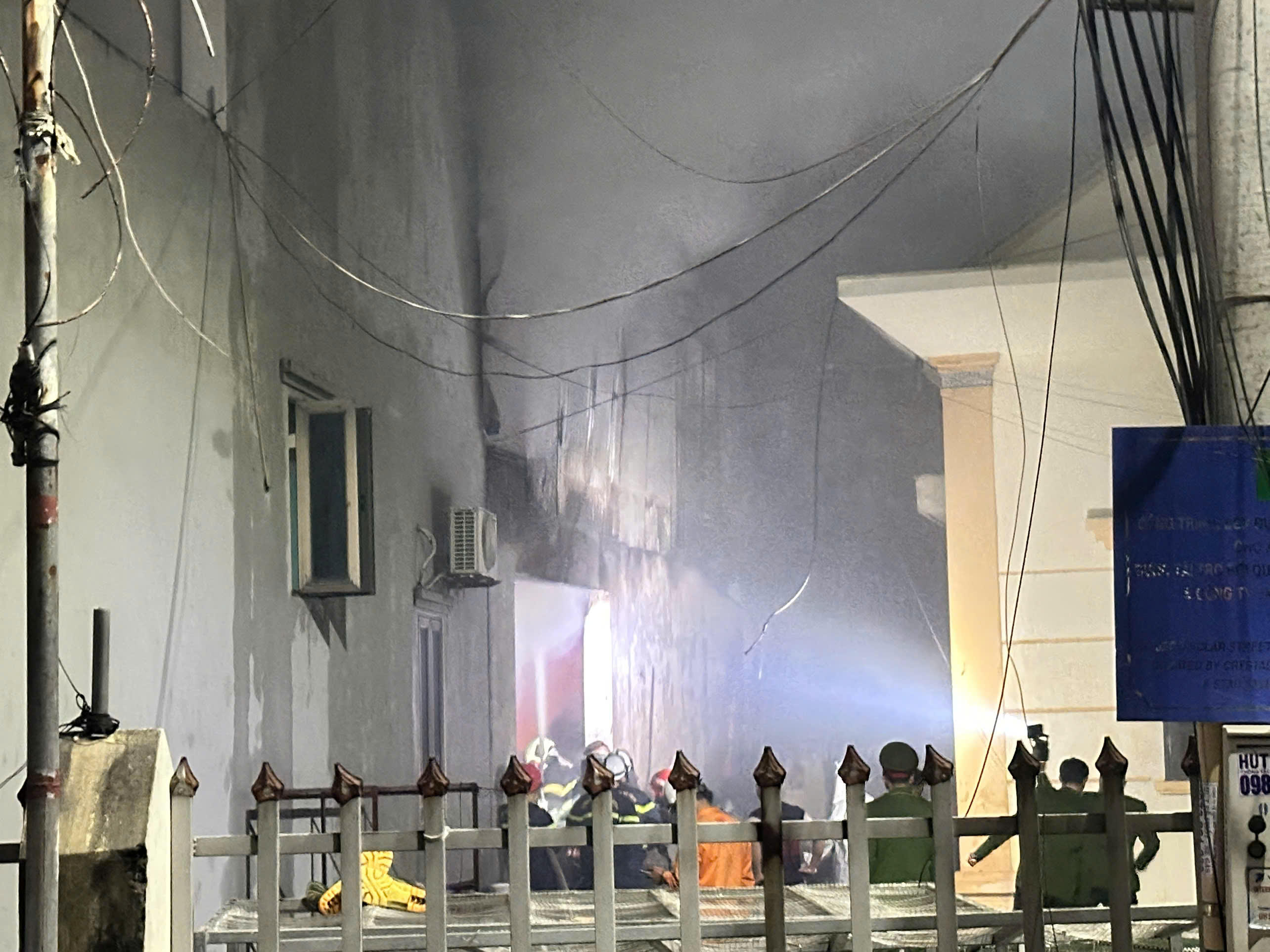 Đến khoảng 20h, đám cháy cơ bản được khống chế, song bên trong nhà xưởng vẫn còn khói và lửa âm ỉ. Lực lượng chức năng tiếp tục phun nước làm mát, xử lý tàn lửa.