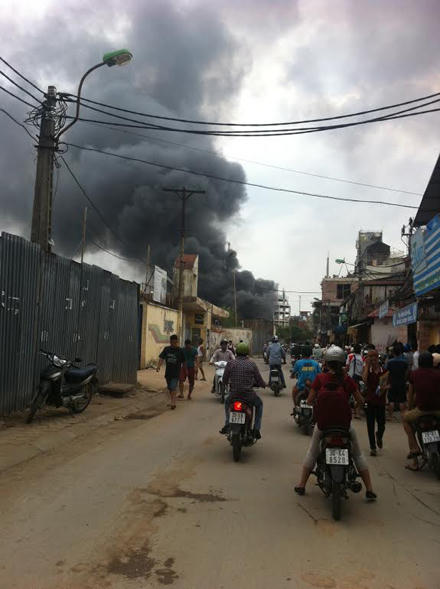 (PLO) - Ngọn lửa kèm cột khói hàng trăm m bốc lên ở Triều Khúc (Thanh Xuân, Hà Nội). Điểm phát cháy là nhà kho của Nhà máy ô tô Hòa Bình.