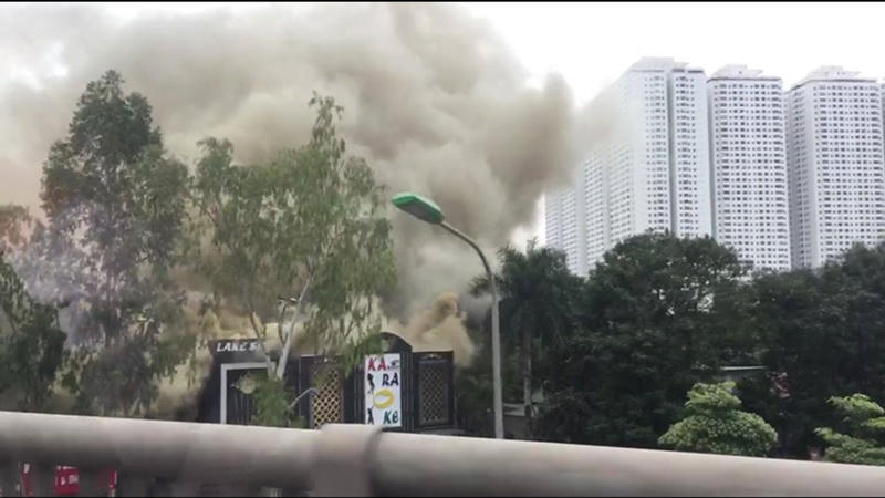 Cháy lớn quán karaoke ở Linh Đàm, khói bốc cao hàng chục mét