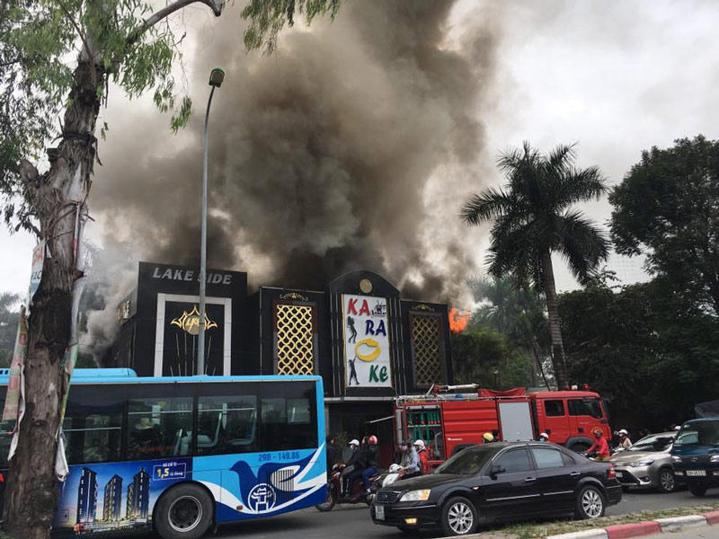 Hơn 9h hôm nay, quán karaoke Lake Side trên đường Nguyễn Hữu Thọ, ngay sát khu vực hồ Linh Đàm bốc cháy dữ dội. Cột khói bốc cao hàng chục mét.