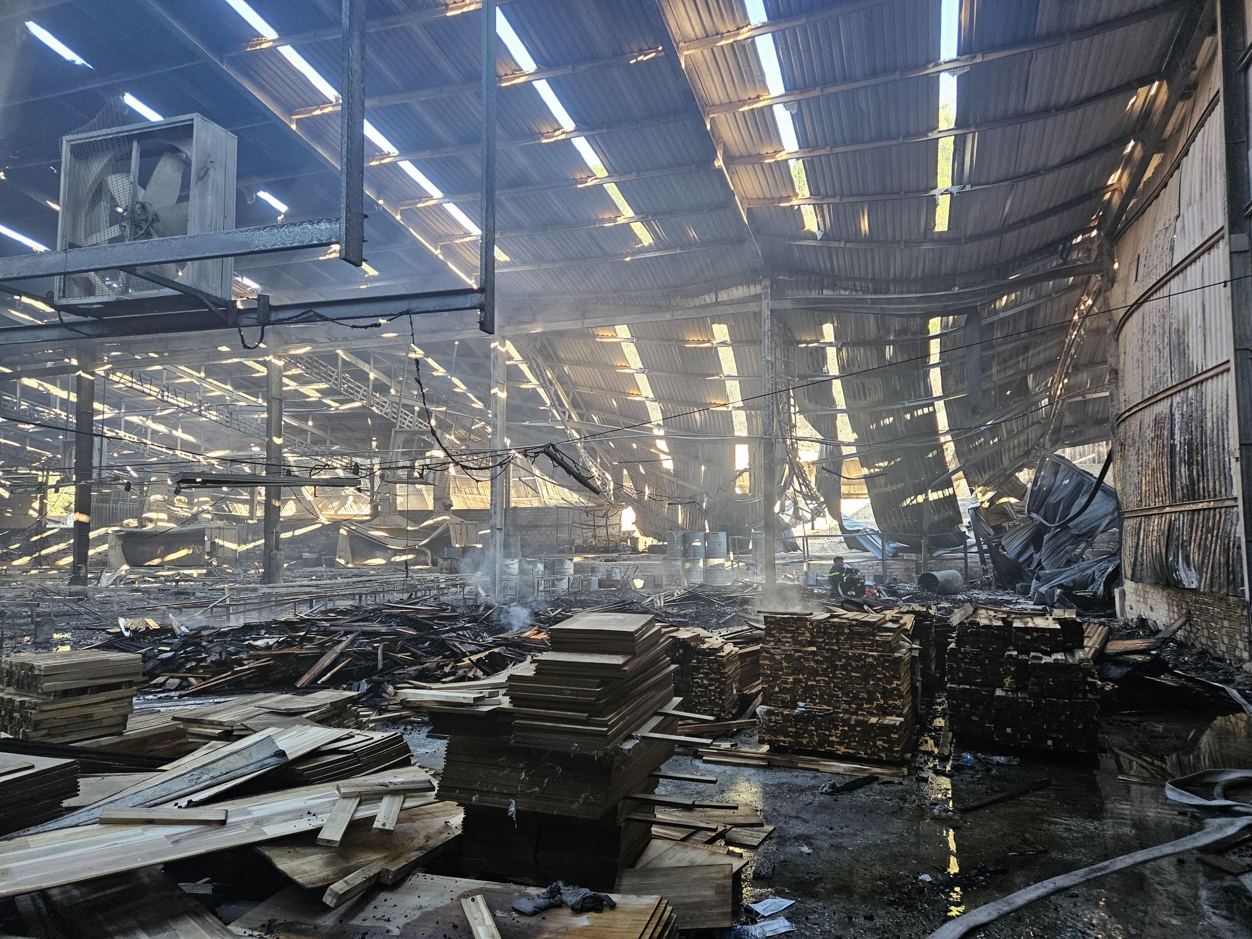 Theo báo cáo sơ bộ, đám cháy đã làm thiệt hại gần 2.400m2 nhà xưởng cùng trên 100m3 gỗ và máy móc thiết bị. Chủ doanh nghiệp ước tính thiệt hại do đám cháy khoảng 20 tỷ đồng.