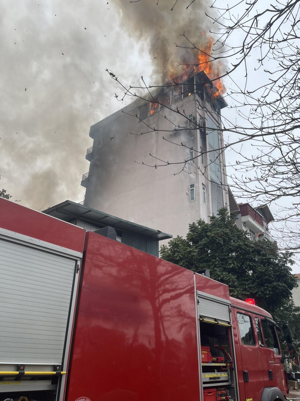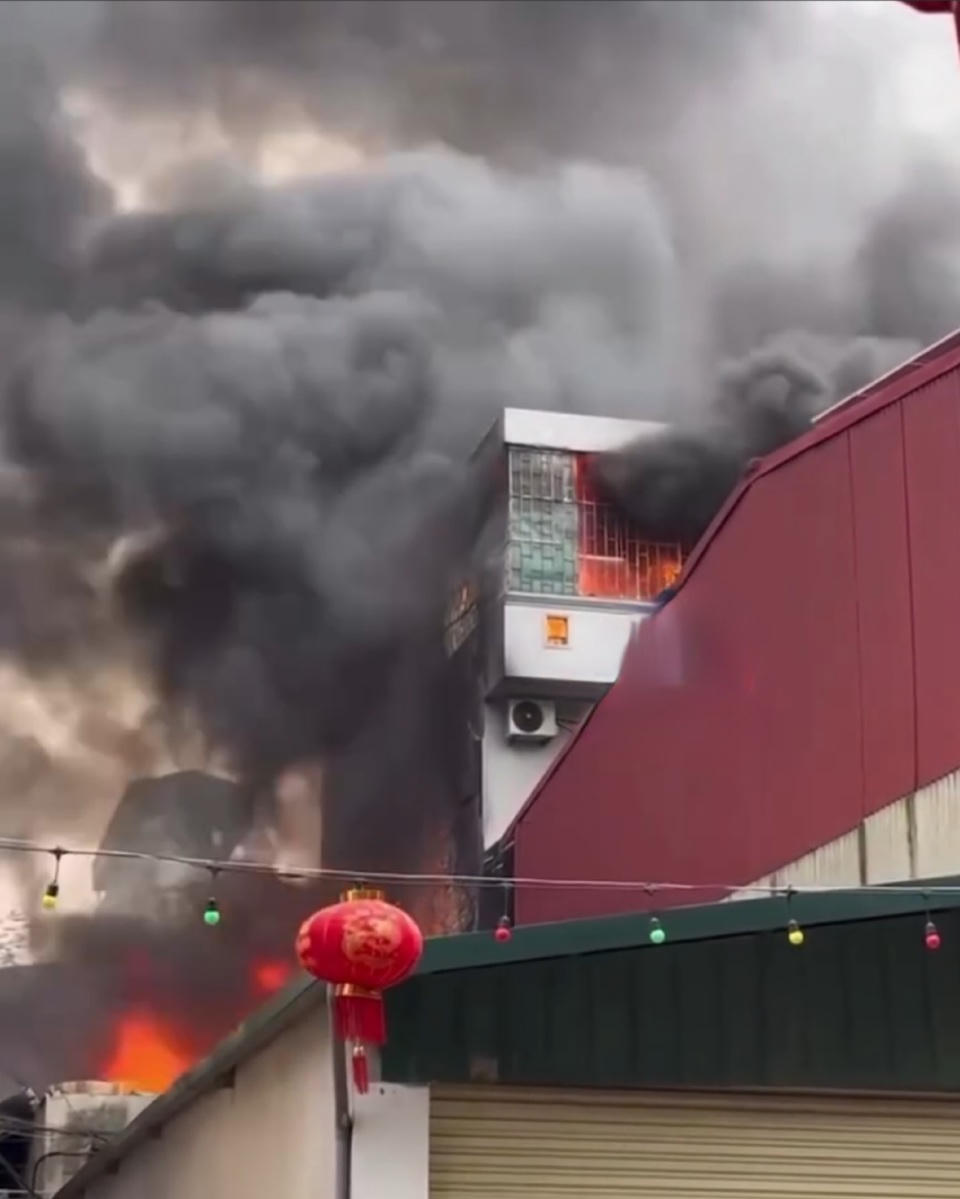 Vụ cháy xảy ra khoảng 13h30 chiều ngày 10/3, tại cơ sở kinh doanh dịch vụ tiệc cưới, hội nghị, tổ chức sự kiện, địa chỉ số 2 ngách 93/15 phố Yên Sở. Ngọn lửa còn cháy lan sang căn nhà 7 tầng liền kề.