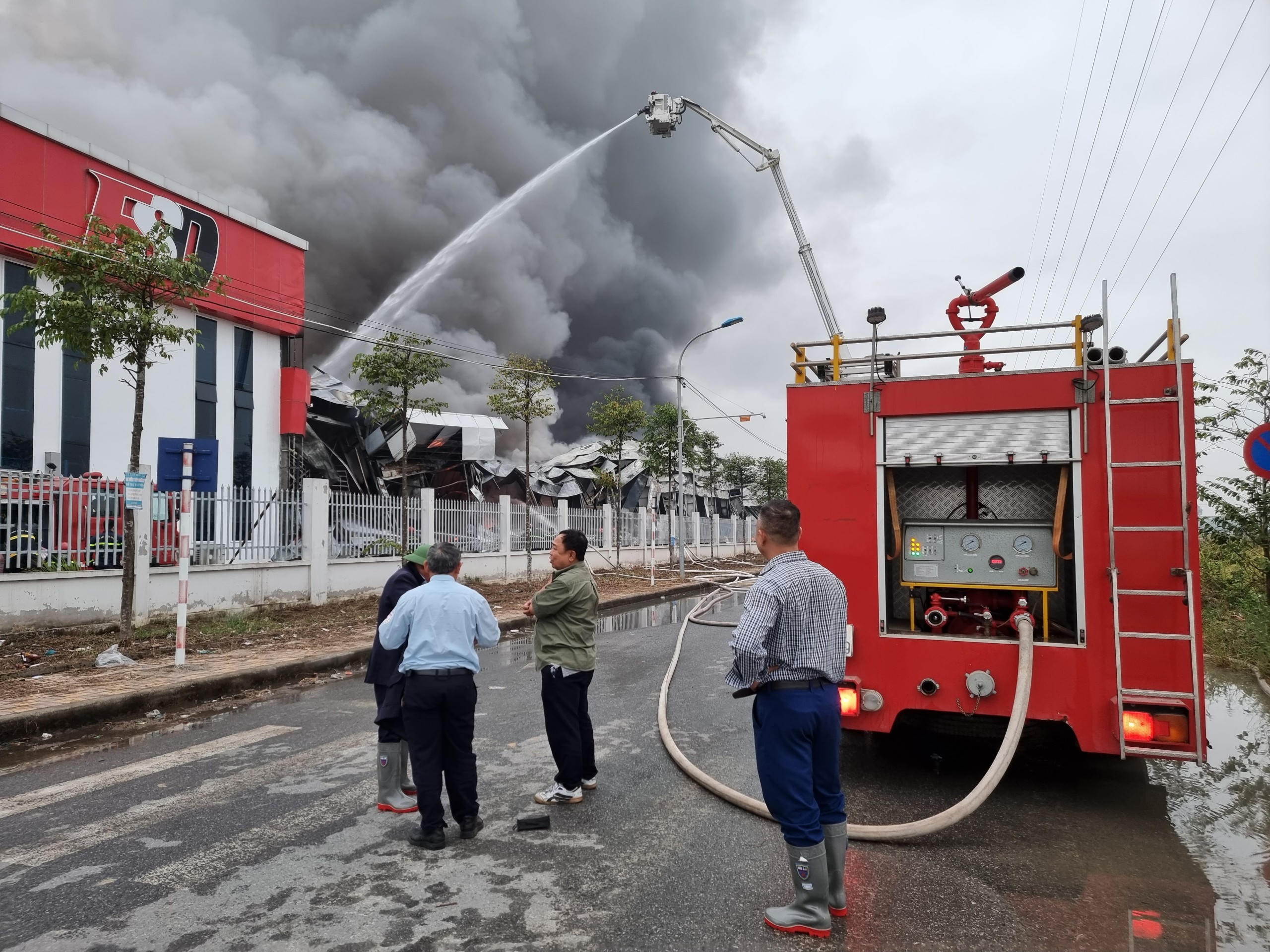 Tại hiện trường, đám cháy lớn bao trùm khoảng 1/3 diện tích nhà xưởng. Do tính chất sản xuất của công ty có sử dụng hóa chất cùng nhiều các nguyên vật liệu liên quan đến sản phẩm nhựa, vận tốc cháy lan lớn, kèm theo gió lớn gây khó khăn cho các lực lượng tham gia, tiếp cận tổ chức chữa cháy.