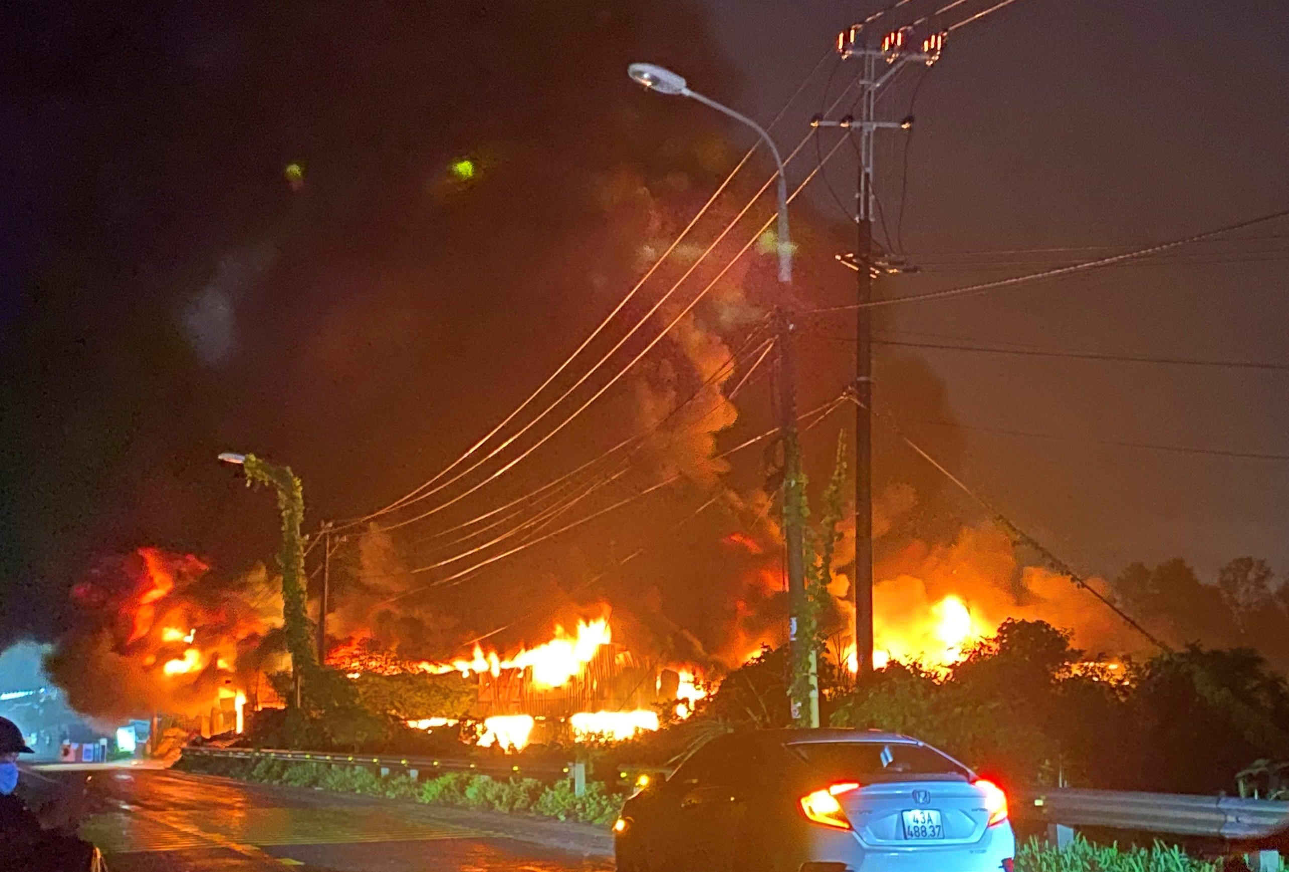 Vụ cháy đã thiêu rụi hoàn toàn kho phế liệu. |