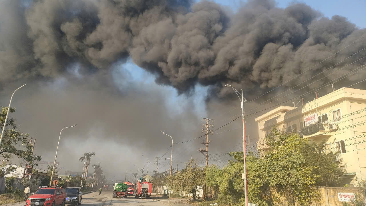 Cháy lớn tại Khu công nghiệp Cái Lân, khói bốc cao bao trùm cả một vùng trời