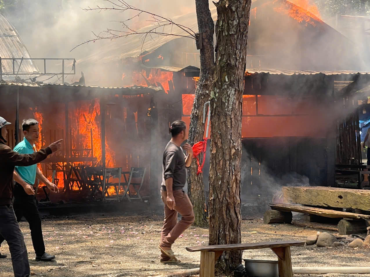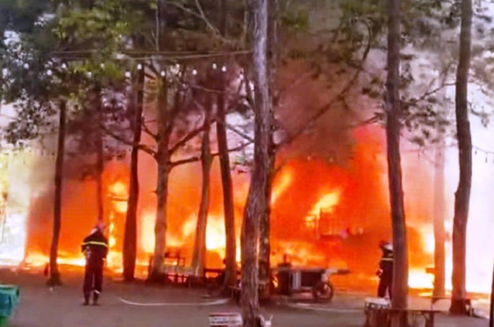 Cháy lớn tại Khu phố đêm Măng Đen, 4 gian hàng bị thiêu rụi