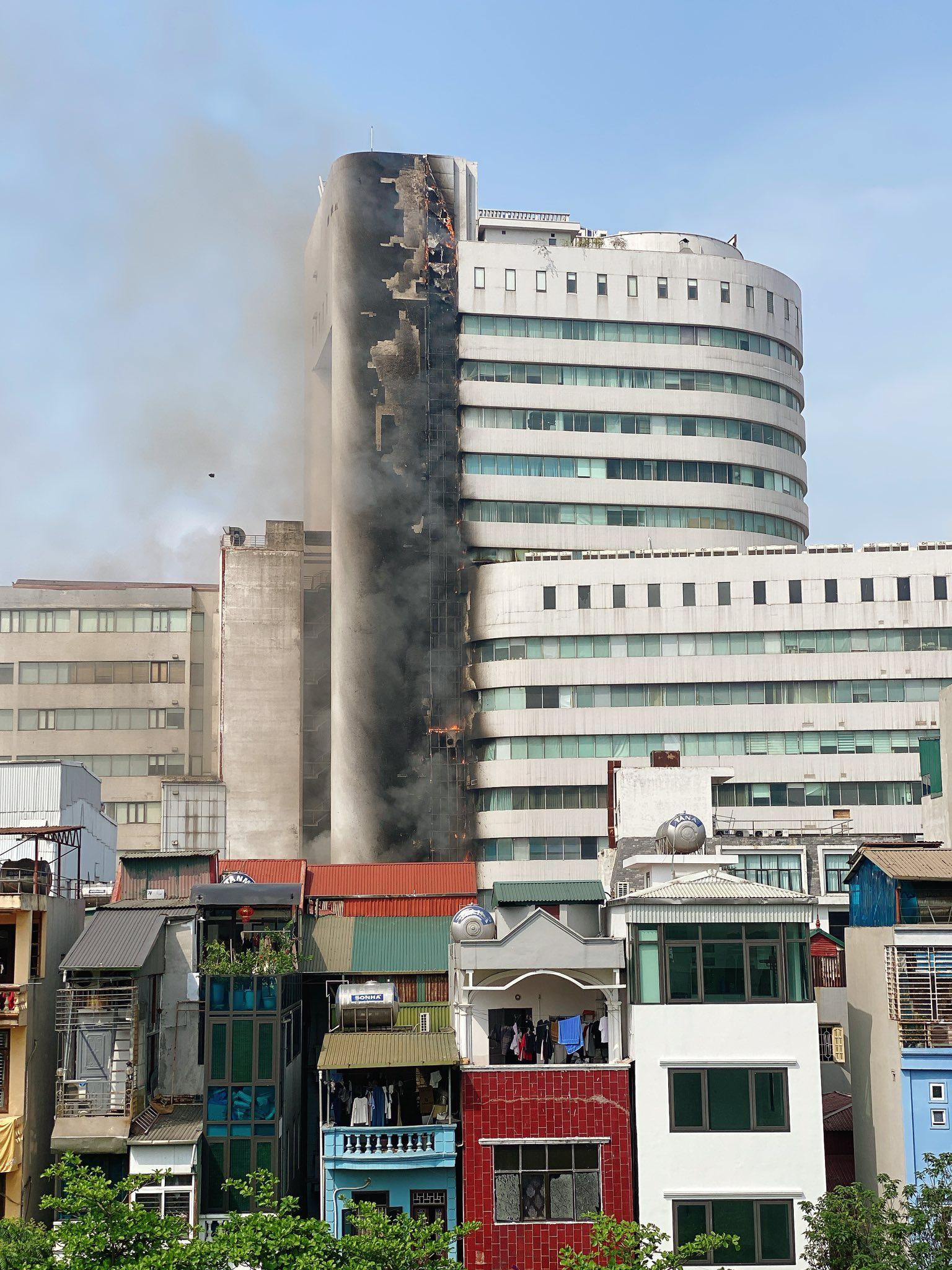 Hiện trường đám cháy toà nhà số 1 Thái Hà, Hà Nội. (Ảnh: mạng xã hội) |