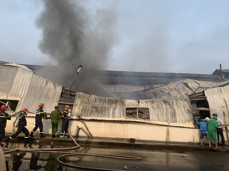 Tại thời điểm đó, đám cháy lan rộng trong khu vực xưởng sản xuất.