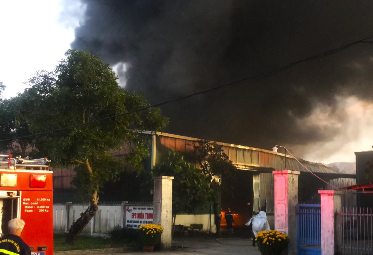 Vụ cháy lớn tại Công ty EPS Miền Trung ước tính thiệt hại khoảng 7 tỉ đồng. |