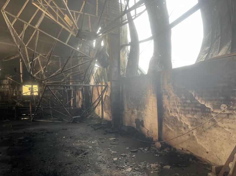Đám cháy lớn khiến xưởng sản xuất hư hại nặng. Ảnh: CACC |