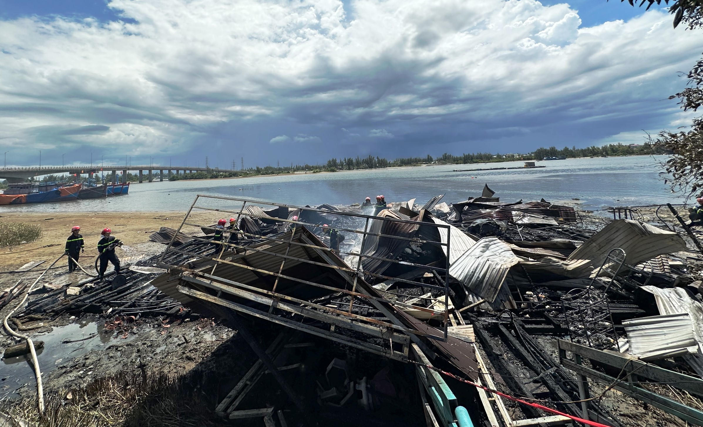 Cháy lớn thiêu rụi 1 quán nổi gần cầu Trà Bồng
