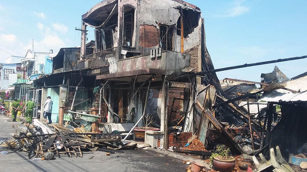 Sau 2 giờ nỗ lực dập lửa, hỏa hoạn bên đường Nguyễn Tri Phương (phường 7, TP Mỹ Tho, Tiền Giang) cơ bản được khống chế. Tuy nhiên, khoảng 7 nhà dân bị cháy rụi vật dụng bên trong, mái tôn méo mó đổ sâp, tường vỡ nham nhở...